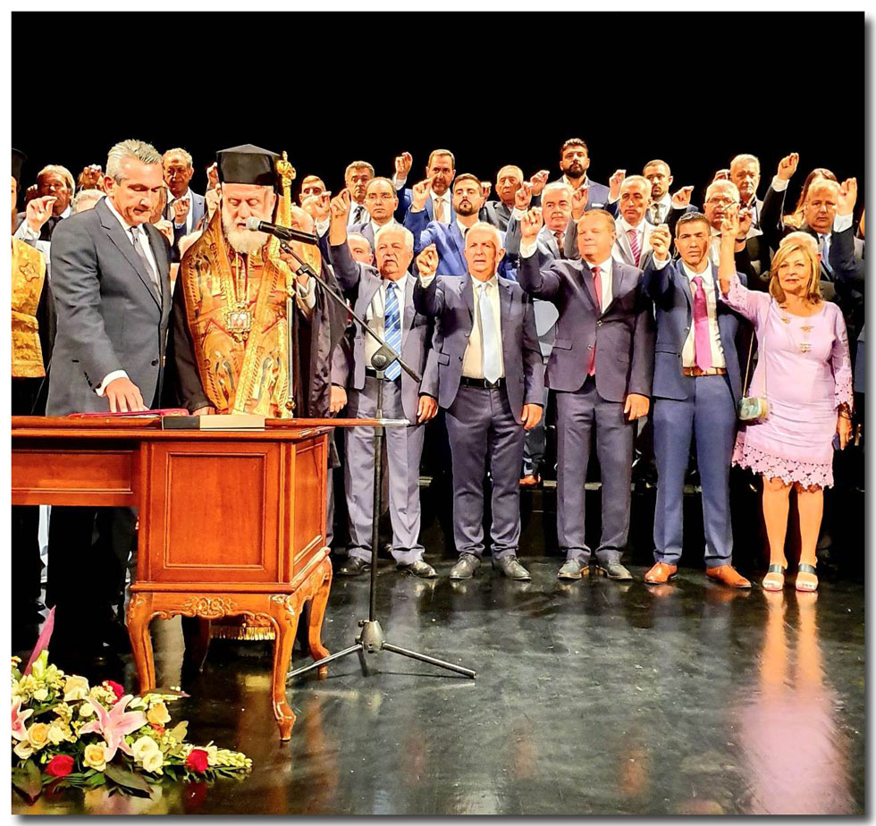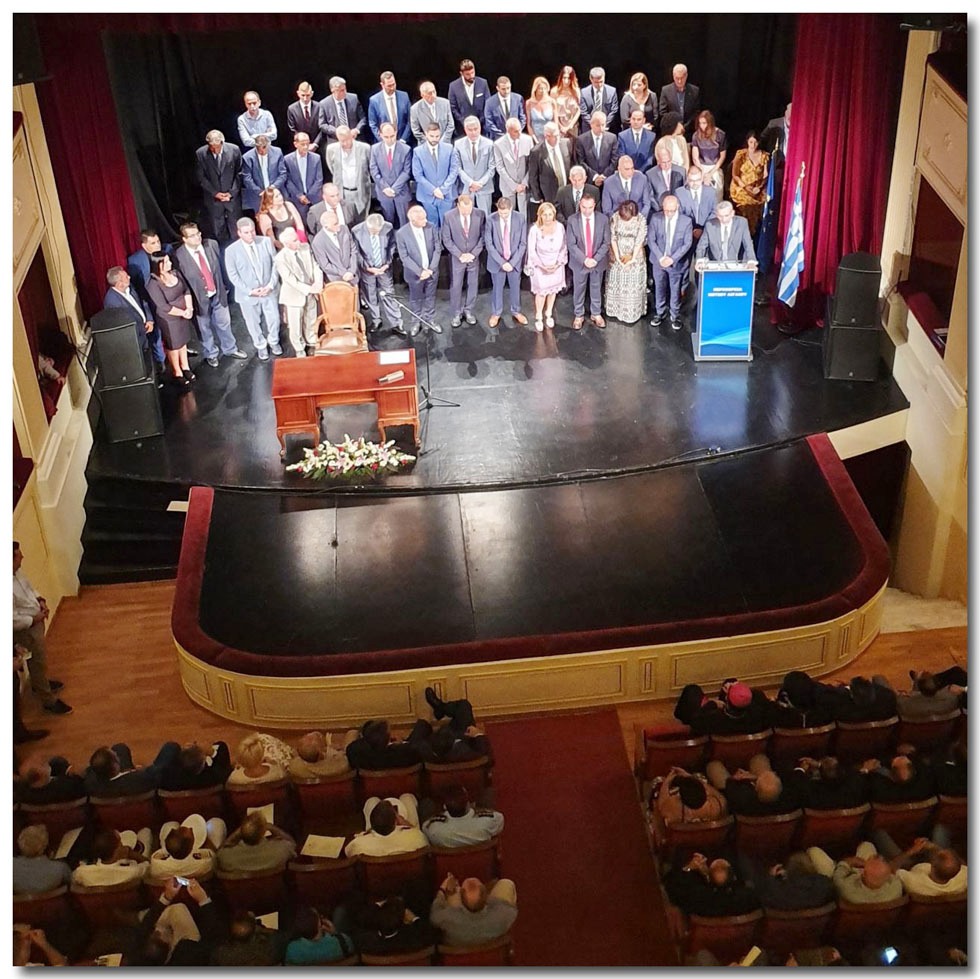 Η τελετή της ορκωμοσίας έγινε, όπως και το 2014, στον εμβληματικό χώρο του Θεάτρου “Απόλλων” στην Ερμούπολη της Σύρου, το απόγευμα του Σαββάτου, 31 Αυγούστου 2019.