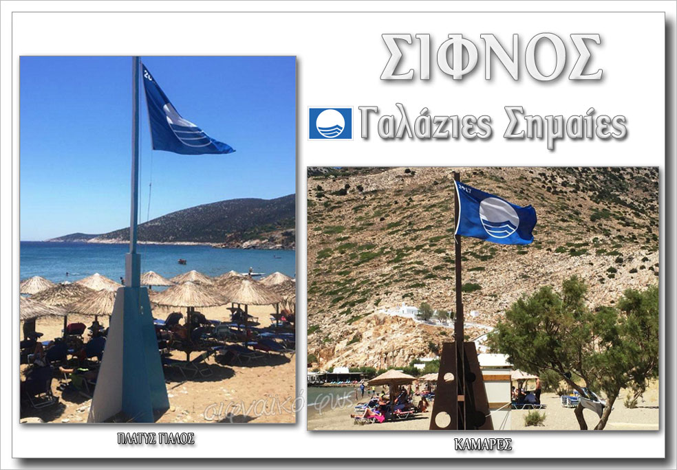 Η Σίφνος μας για ακόμα μια χρονιά βραβεύτηκε με τη Γαλάζια Σημαία της Ευρωπαϊκής Ένωσης, για τις παραλίες των Καμαρών και του Πλατύ Γιαλού, μια διάκριση που αποτελεί ξεχωριστό τουριστικό πλεονέκτημα για το νησί μας, αναγνωρίσιμο σε όλο τον κόσμο.