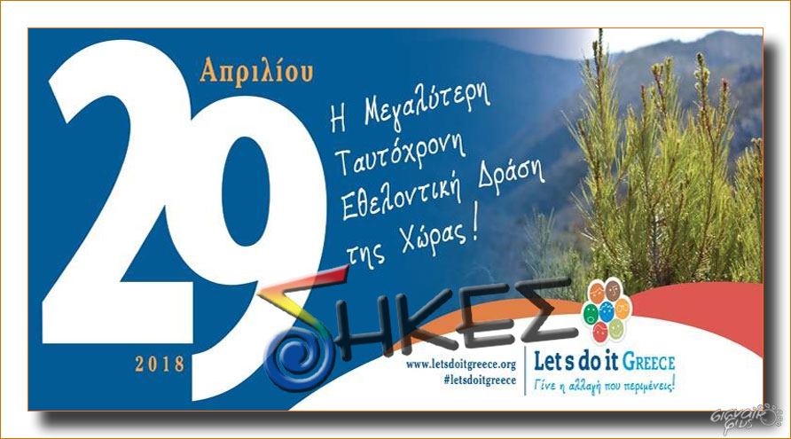 Την Κυριακή 29 Απριλίου 2018, πραγματοποιείται και στην Ελλάδα, η Διεθνής Καμπάνια εθελοντικών καθαρισμών «Let’s do it Greece!» που φέτος τελεί υπό την αιγίδα της Α.Ε του προέδρου της Δημοκρατίας κ. Προκοπίου Παυλόπουλου.