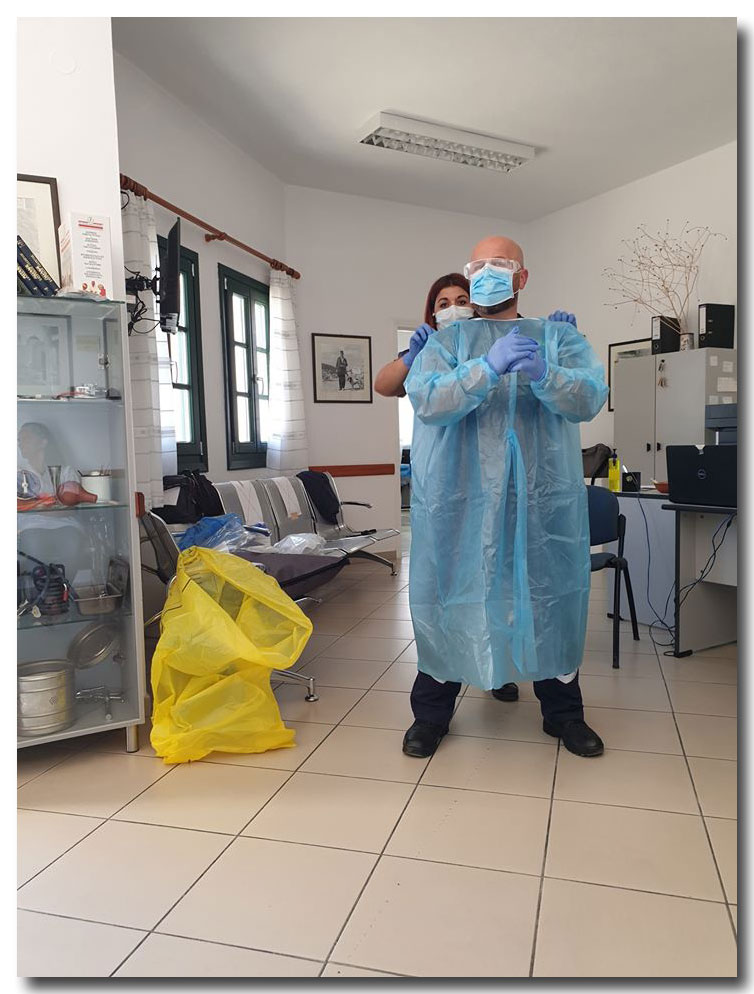Πραγματοποιήθηκε σήμερα (Τρίτη 2 Ιουνίου) εκπαίδευση του Υγειονομικού Προσωπικού του Ιατρείου μας στη διαχείριση ύποπτων και επιβεβαιωμένων περιστατικών SARS-CoV-2, στη χρήση των Μέσων Ατομικής Προστασίας & σε ΚΑΡ.ΠΑ. (Καρδιοπνευμονική Αναζωογόνηση) με τις υφιστάμενες υγειονομικές συνθήκες.