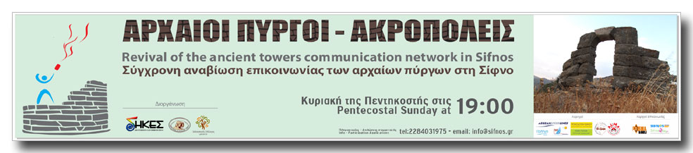 Η Δημοτική Κοινωφελής Επιχείρηση Σίφνου, ο Πολιτιστικός Σύλλογος Σίφνου και ο Δήμος Σίφνου διοργάνωσαν στις 16  Ιουνίου 2019 στις 7 το απόγευμα την 17η ετήσια αναβίωση της επικοινωνίας των αρχαίων πύργων και Ακροπόλεων της Σίφνου