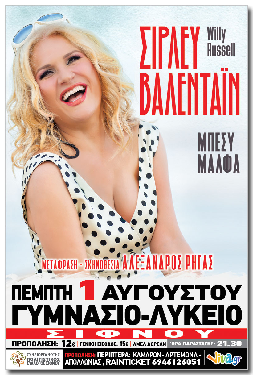 Θεατρική Παράσταση “SHIRLEY VALENTINE” (01.08.19 στις 21.30 στο Γυμνάσιο-Λύκειο Σίφνου)