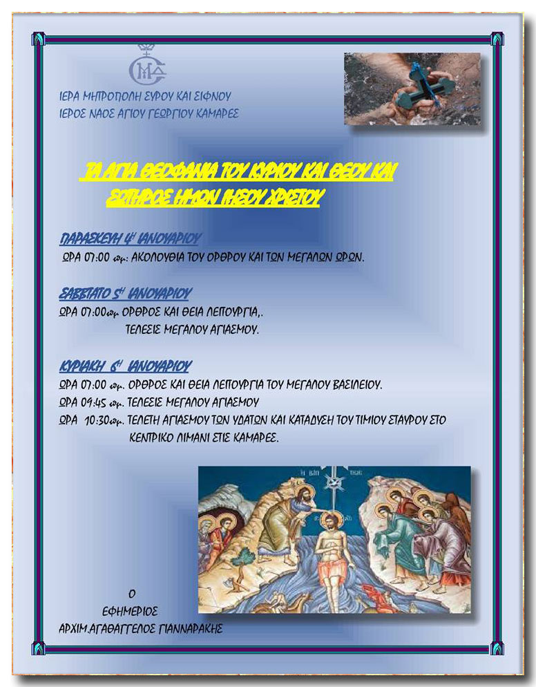 . Ι.Ν. Αγίου Γεωργίου Καμαρών Σίφνου: Πρόγραμμα Τριήμερου Εορτασμού Θεοφανείων . . . . .