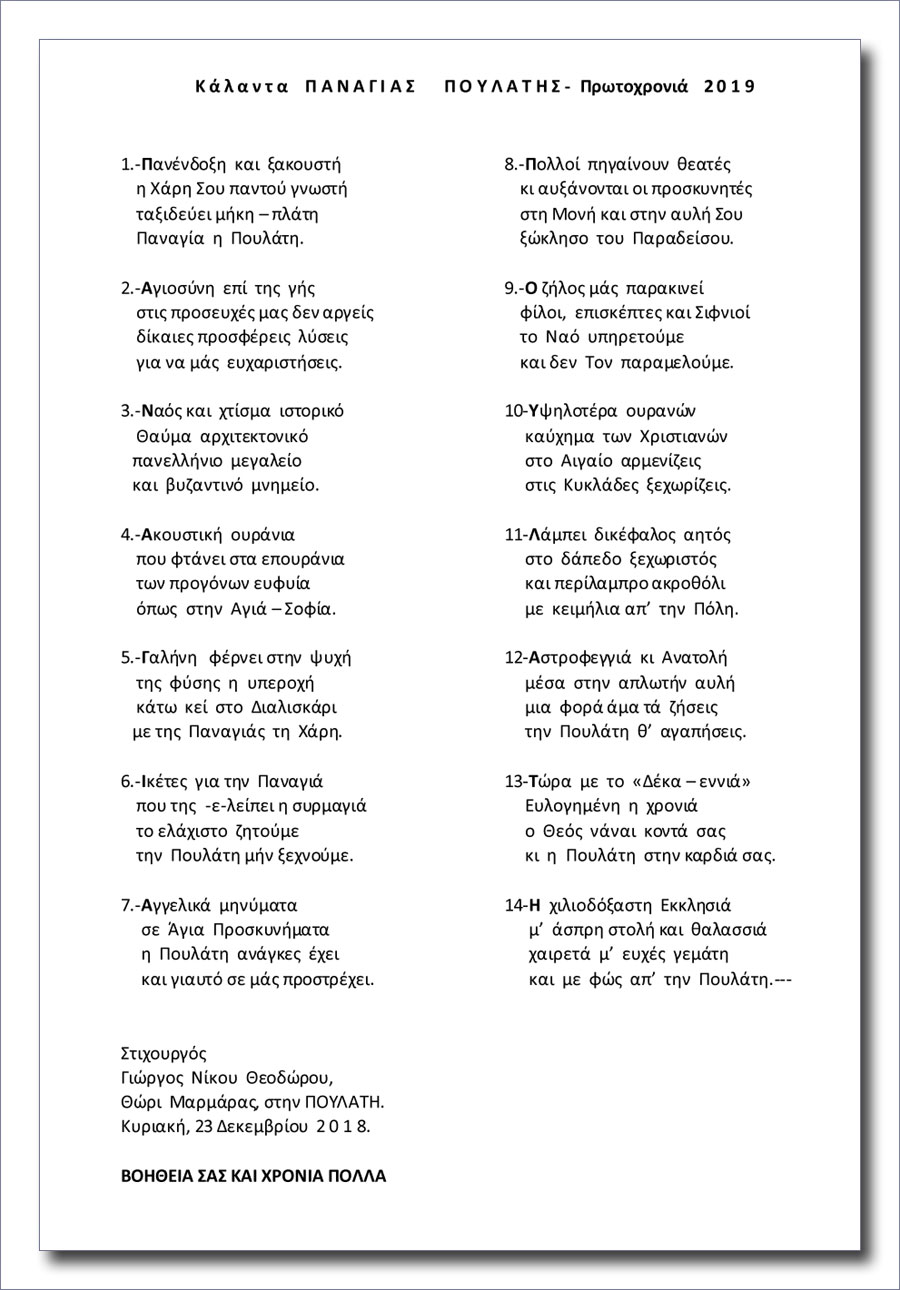 Κάλαντα ΠΑΝΑΓΙΑΣ ΠΟΥΛΑΤΗΣ – Πρωτοχρονιά 2019