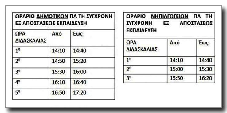 4. Ποιο είναι το ωράριο που προβλέπεται για τη σύγχρονη εξ αποστάσεως εκπαίδευση;