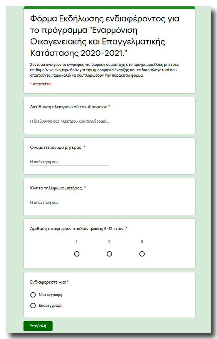 Στο πλαίσιο Δράσης “Εναρμόνιση Οικογενειακής και Επαγγελματικής ζωής 2020-2021”, σας ενημερώνουμε ότι σε λίγες ημέρες ξεκινά, ο νέος κύκλος υποβολής αιτήσεων για τη νέα χρονιά.