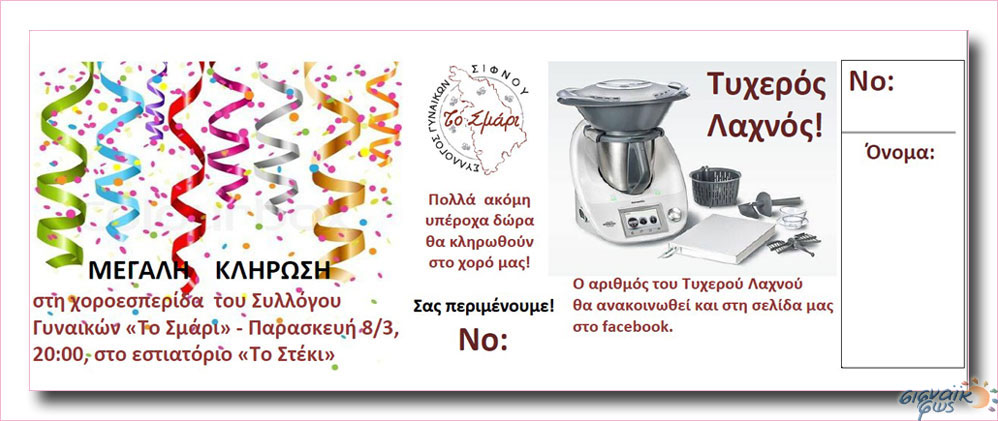 Ο Σύλλογος Γυναικών Σίφνου «Το Σμάρι» σας προσκαλεί σε μία αξέχαστη βραδιά στις 8 Μαρτίου Παγκόσμια Ημέρα της Γυναίκας!