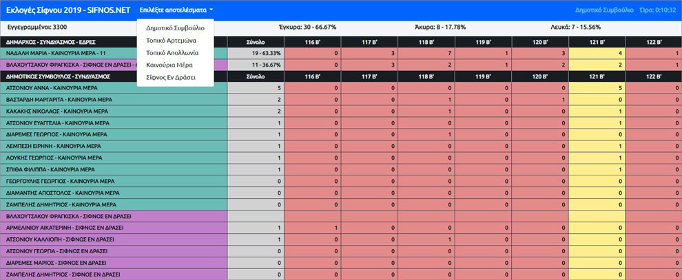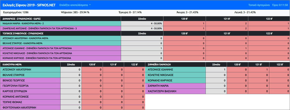 Παρακολουθήστε αύριο σε πραγματικό χρόνο (Real Time) μετά το κλείσιμο της κάλπης στις 19:00 τα αποτελέσματα των Δημοτικών Εκλογών Δήμου Σίφνου στο SifnosNet (https://ekloges.sifnos.net/) επιλέγοντας κατά περίπτωση (από το “επιλέξτε αποτελέσματα“) τα αποτελέσματα για: Δημοτικό Συμβούλιο, Κοινότητα Αρτεμώνα, Κοινότητα Απολλωνίας ή ανά συνδυασμό για το Δημοτικό Συμβούλιο.