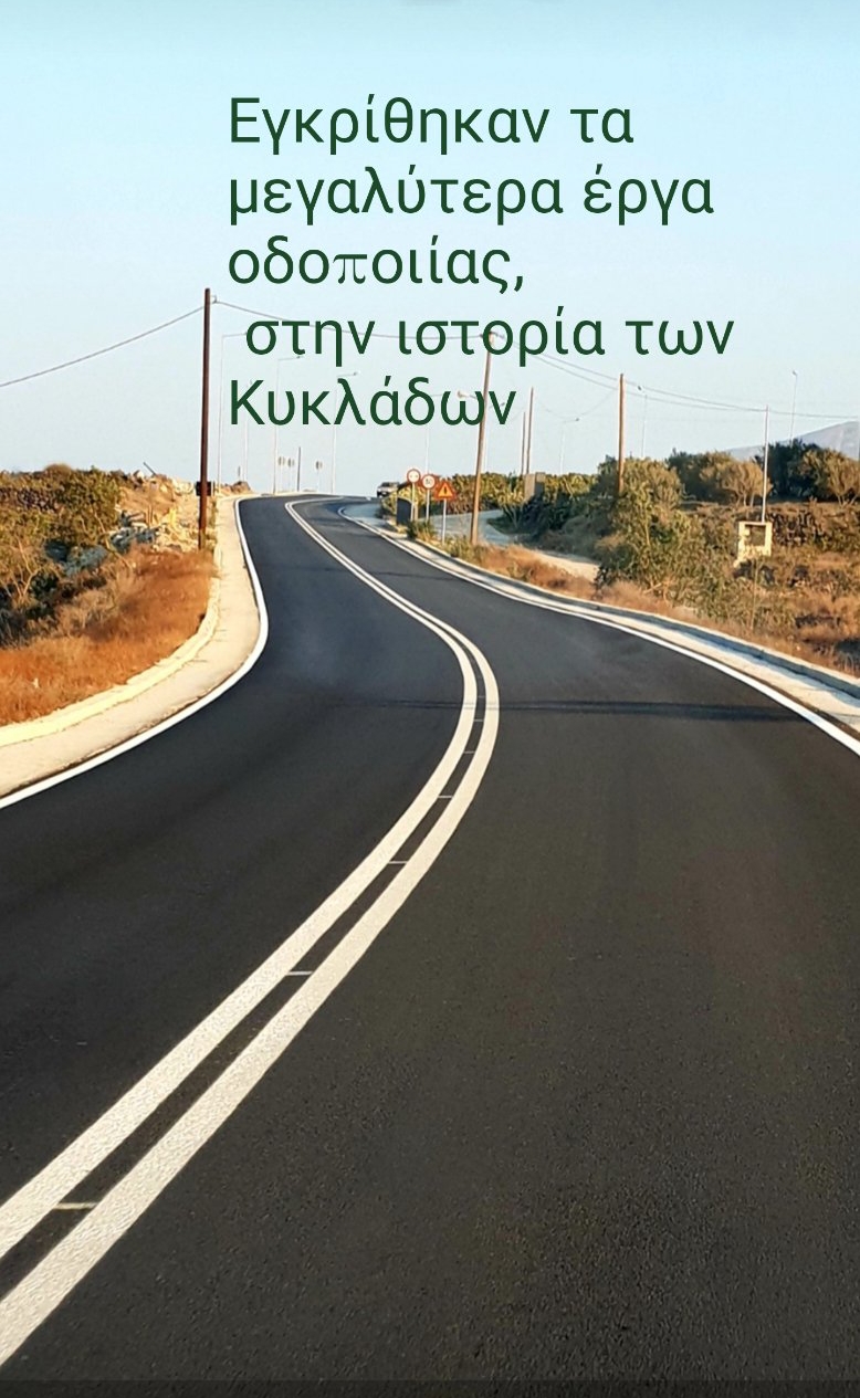 «Ξεκινάμε ένα μεγαλόπνοο σχέδιο βελτίωσης του οδικού δικτύου των νησιών μας έχοντας εξασφαλίσει το μεγαλύτερο ποσόν που έχει διατεθεί ποτέ για τις Κυκλάδες, παρά τις εξαιρετικά δύσκολες συνθήκες σε όλα τα επίπεδα.