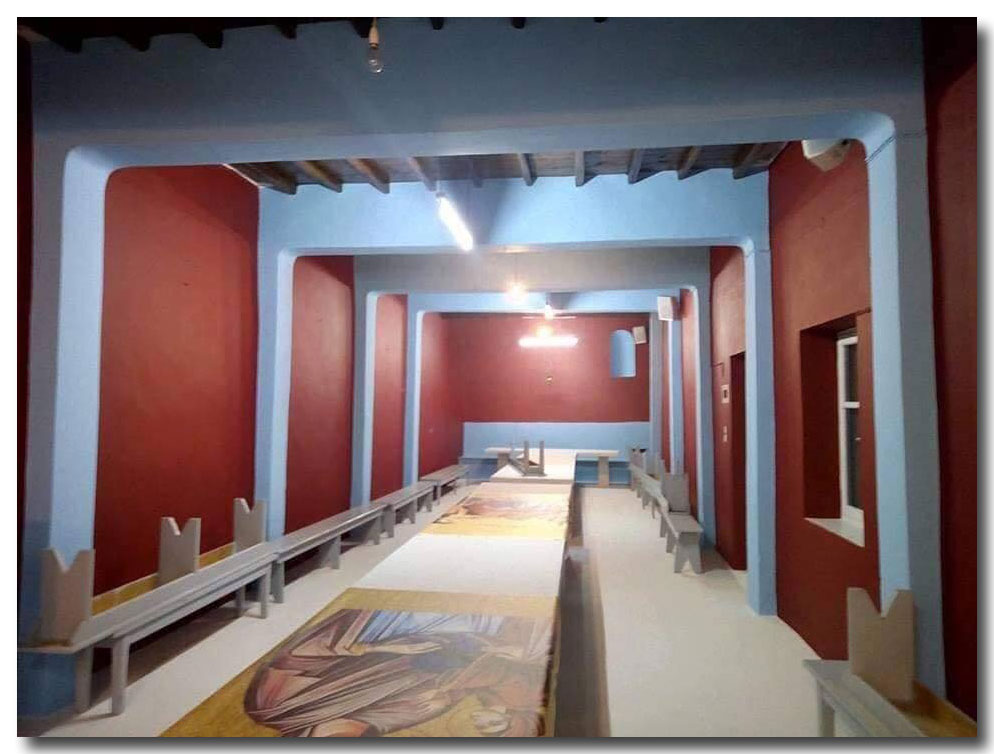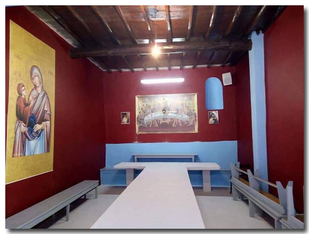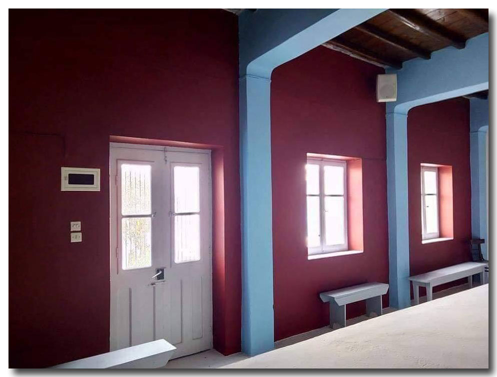 Το λιτό λευκό χρώμα που κοσμεί το νησί μας, κομμάτι της πολιτιστικής μας ταυτότητας, αντικαταστάθηκε με χρώμα μπορντό, γαλάζιο και ταπετσαρίες με αγιογραφίες, μεταξύ άλλων.  Απορίας άξιο, ο λόγος μιας τέτοιας παρέμβασης αλλά και ποιος την ενέκρινε.