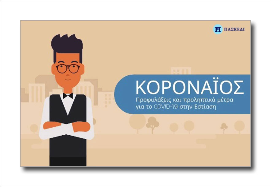 Το Πανελλήνιο Σωματείο Καταστημάτων, Καταναλωτών, Εστίασης και Διασκέδασης (ΠΑΣΚΕΔΙ) παρουσιάζει σε βίντεο πρακτικούς κανόνες πρόληψης από τον κορωνοϊό για εστιατόρια.