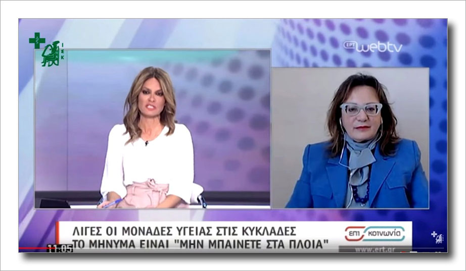 Δείτε τις δηλώσεις της Προέδρου του Ιατρικού Συλλόγου Κυκλάδων ιατρού Βούλγαρη Παναγιώτας, στην εκπομπή της ΕΡΤ1 “Επι-κοινωνία” στις 18/03/2020, για το θέμα των μετακινήσεων των επιβατών από και προς τα νησιά των Κυκλάδων.