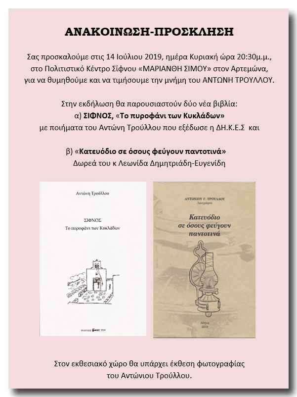 . Πρόσκληση σε εκδήλωση παρουσίασης δύο νέων βιβλίων του Αντώνη Τρούλλου . . .