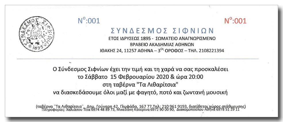Πρόσκληση στον Αποκριάτικο Χορό του Συνδέσμου Σιφνίων (15.02.2020)