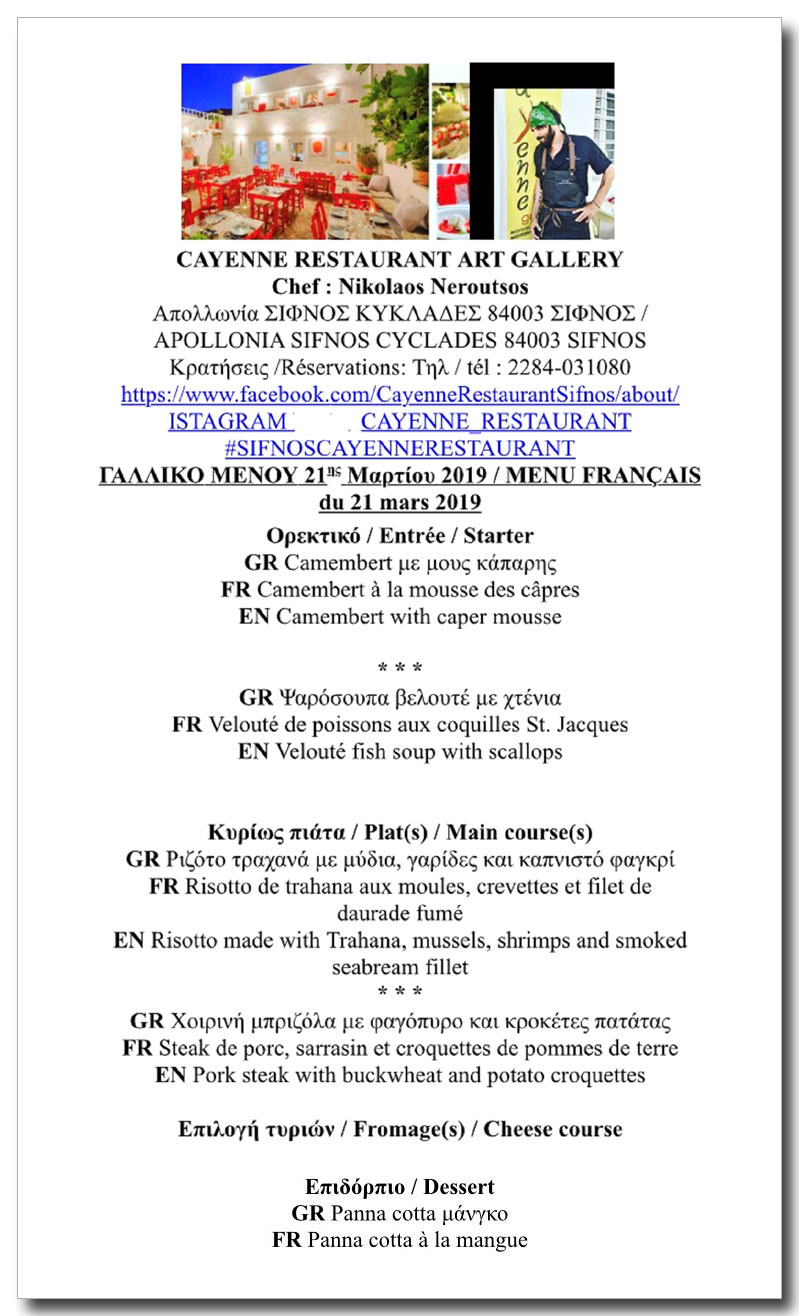 Σίφνος: Στις 21 Μαρτίου ο “δικός μας” chef Νίκος Νερούτσος θα μας εκπροσωπήσει για 3η φορά με το «Cayenne Restaurant – Art Gallery» στο διεθνές γαστρονομικό γεγονός «Goût de France – Good France»