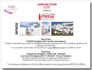 Home / Ειδήσεις / Σίφνου / Σίφνος 22 & 23 Οκτωβρίου: Δωρεάν εκπαίδευση με τα Σεμινάρια Counting Stars powered by the Coca-Cola Foundation από την ομάδα του ΜΕΧΟΧΟ