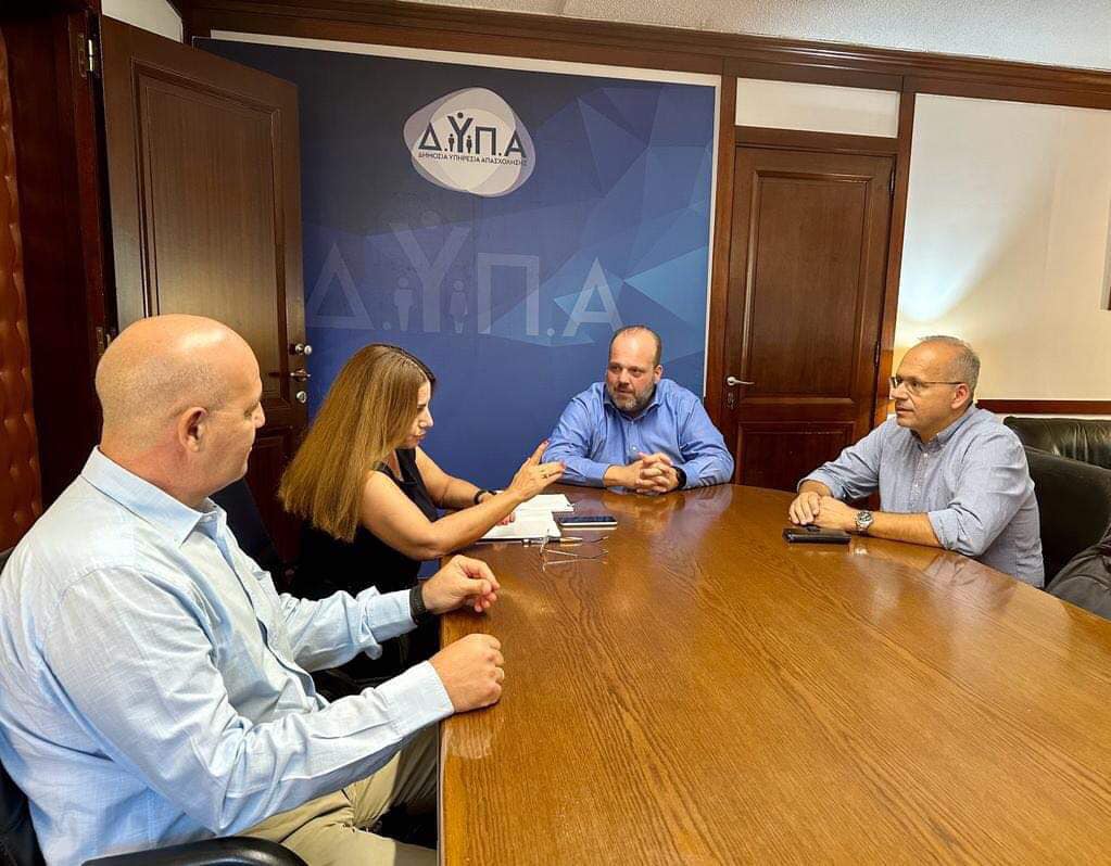- Το Διοικητή της Δ.ΥΠ.Α. (πρώην ΟΑΕΔ) κ. Σπύρο Πρωτοψάλτη και την Υποδιοικήτρια κα Γιάννα Χορμόβα, για προώθηση κοινών δράσεων και προγραμμάτων, για την αντιμετώπιση της ανεργίας και την αύξηση της απασχόλησης!