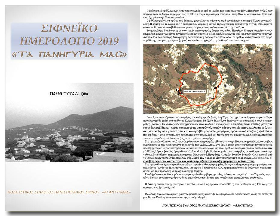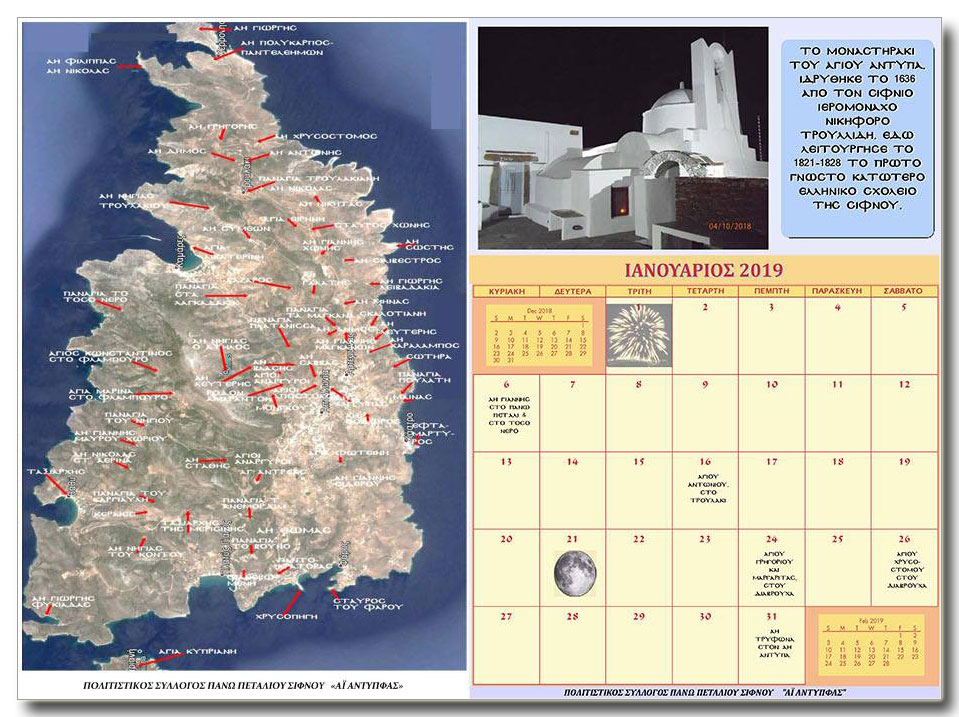 Σύλλογος Άνω Πεταλιού Σίφνου «Άι Αντύπφας»: Έκδοση Ημερολογίου 2019 με τα πανηγύρια της Σίφνου!