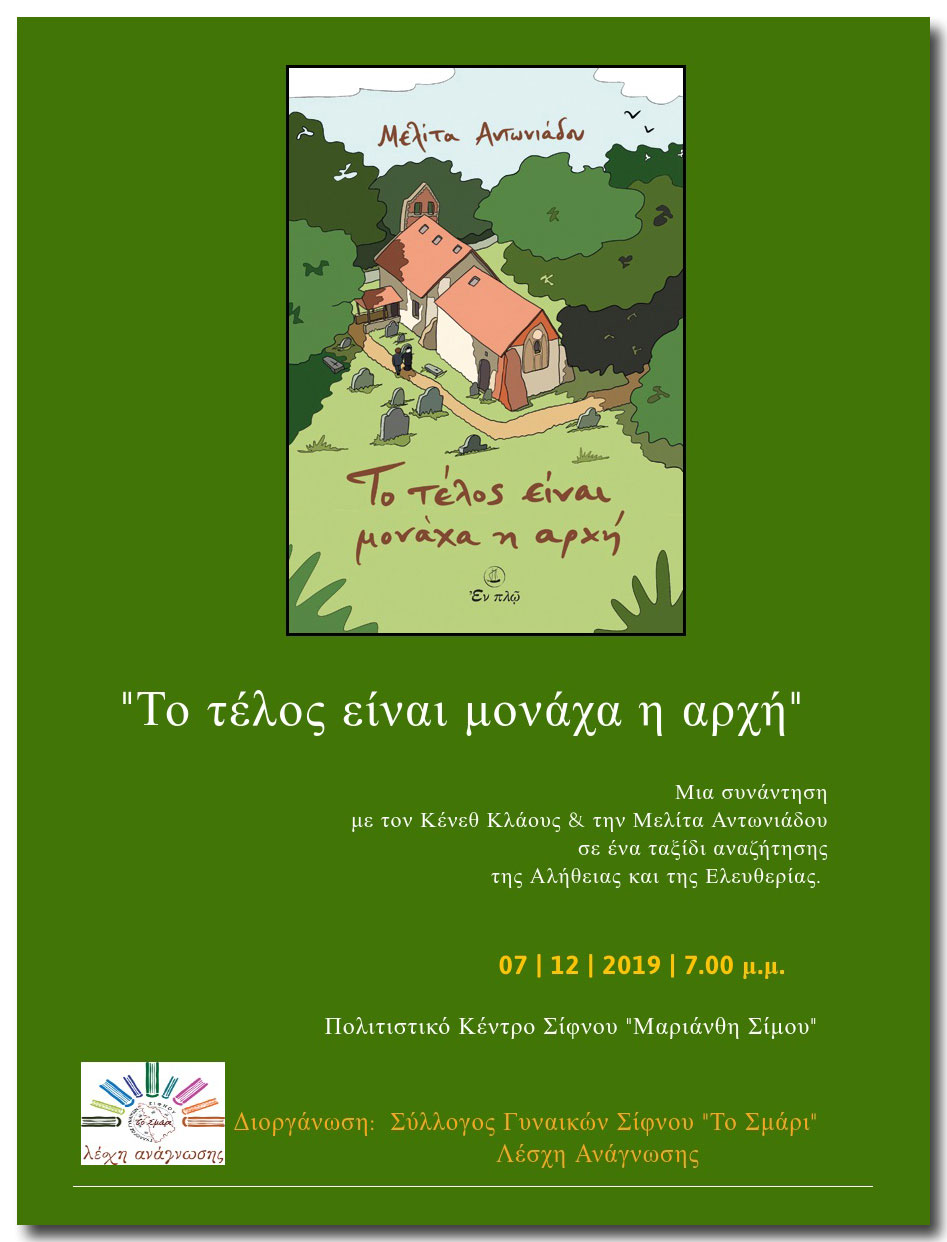 Σύλλογος Γυναικών Σίφνου «Το Σμάρι»: Παρουσίαση του βιβλίου «Το τέλος είναι μονάχα η αρχή» (7/12/19 στις 7μμ)