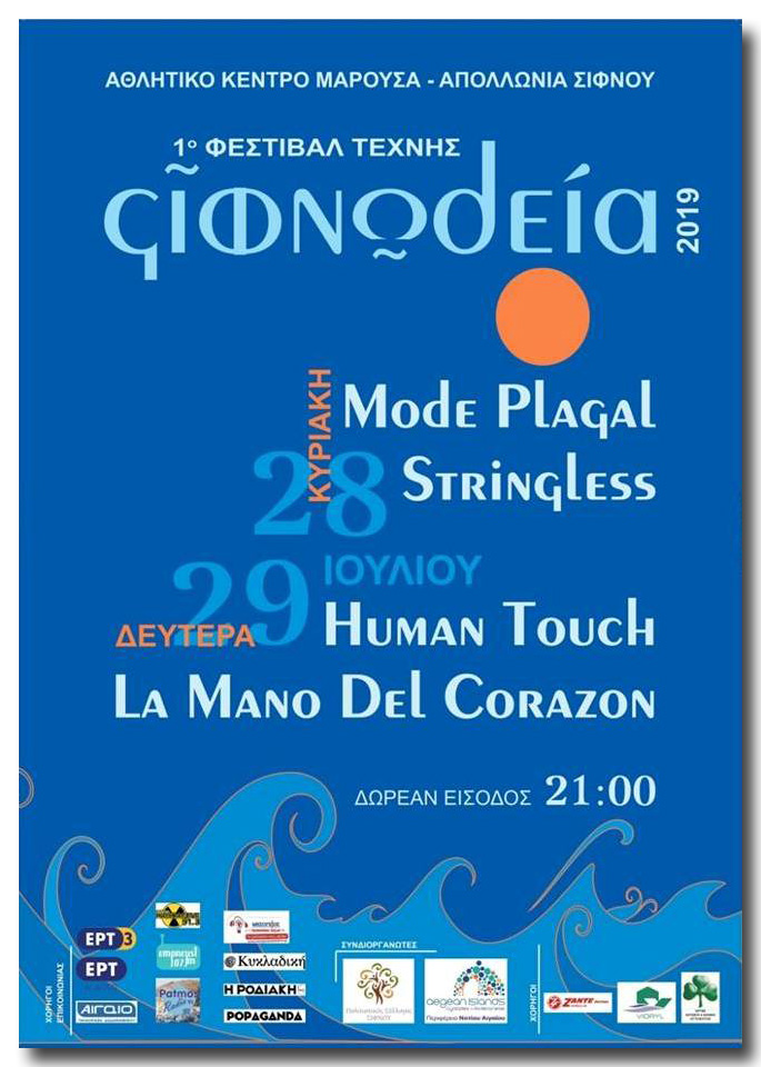 Ο Πολιτιστικός Σύλλογος Σίφνου, με συνδιοργανώτρια την Περιφέρεια Νοτίου Αιγαίου, διοργανώνουν, το 1ο Φεστιβάλ Τέχνης ‘’Σιφνωδεία’’ 2019, στο Αθλητικό Κέντρο Μαρούσα, στην Απολλωνία της Σίφνου, στις 28 & 29 Ιουλίου 2019, με ελεύθερη είσοδο.