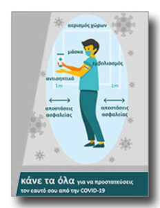 Αναλυτικότερα: καθαρίζουμε συχνά τα χέρια, φοράμε μάσκα, αποφεύγουμε τον συγχρωτισμό και τηρούμε αποστάσεις, αερίζουμε καλά τους χώρους και καλύπτουμε το στόμα και τη μύτη όταν βήχουμε ή φτερνιζόμαστε. #ΚάνεΤαΌλα κι εσύ, προκειμένου να προφυλάξεις τον εαυτό σου και τους γύρω σου και να μπορέσουμε όλοι μας να απαλλαχθούμε από τον ιό το συντομότερο δυνατόν.